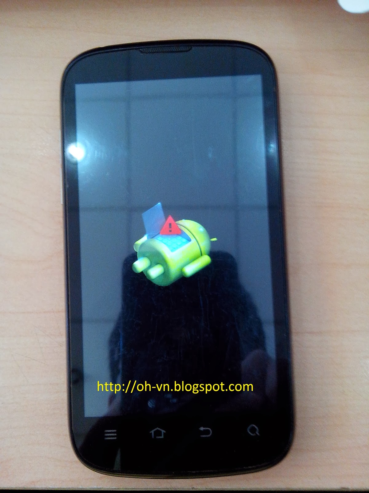– Máy sẽ xuất hiện con Android có dấu chấm than như hình bên dưới: