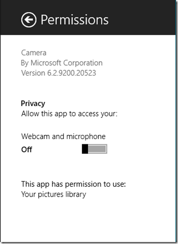 – Tiếp đến bạn nhấp vào Permissions – với thao tác này ứng dụng Camera sẽ cho phép bạn sử dụng Webcam & Microphone.