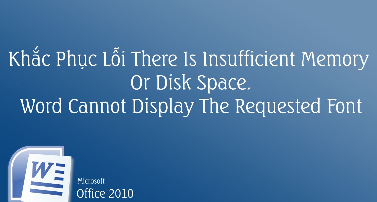 Khi sử dụng office 2010, nhiều người mở Word lên là gặp thông báo: “There is insufficient memory or disk space. Word cannot display the requested font”.