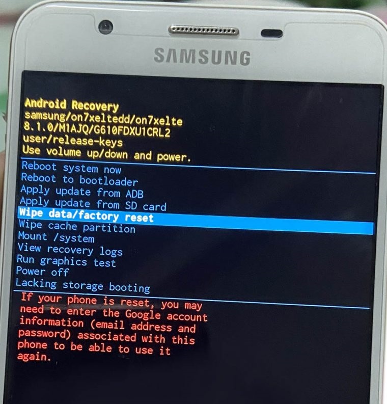 Cách Hard Reset Samsung Galaxy J7 Prime